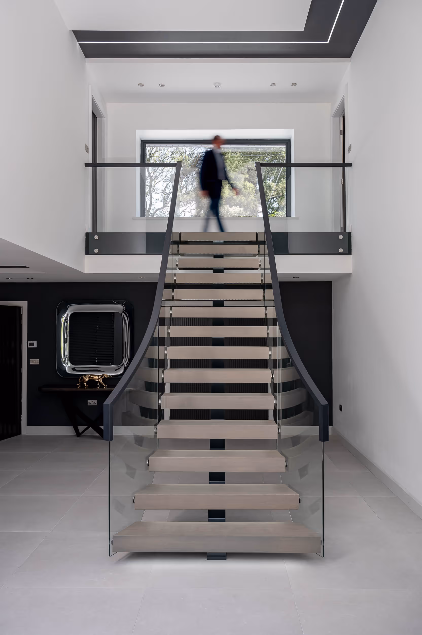 Grey staircases aren’t bound to a specific style, and through clever design and application of finishes, First Step Designs can incorporate a wide variety of materials into a staircase that turns heads. Whether you’re looking for a staircase that is entirely grey or predominantly grey with specific accents, for example, white oak handrails or glass balustrades, we manufacture bespoke grey metal staircases, floating staircases, and central spine staircases for discerning homeowners across the UK.